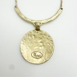 LIA SOPHIA Matte Gold Tone Hammered Disk Signed Necklace