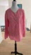 Liberty Art Fabrics pullover blouse. Pink and white botanical pattern. Buttons half way up blouse. No collar. Pin tuck pleats on shoulders. Roll tab sleeves. Material tag is faded, however, this is a fine cotton fabric. Extra button sewn on side tag.