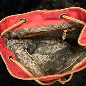Gorgeous coral pink small bag, leather detailing, lots of pockets, super light!