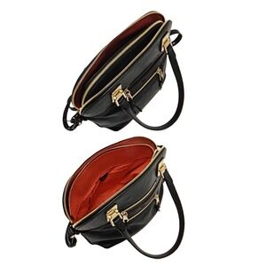 This is an authentic CHLOE Leather Angie Tote in Black. This stylish tote is crafted of luxurious black leather with a unique structure. The bag features leather strap top handles with gold links and a cross-body leather shoulder straps with gold hardware clasps and two frontal zipper pockets with zippers that run in opposite ways. The top zipper opens to a spacious coral fabric interior. This is an excellent tote, ideal for day and evening use, only from Chloe!