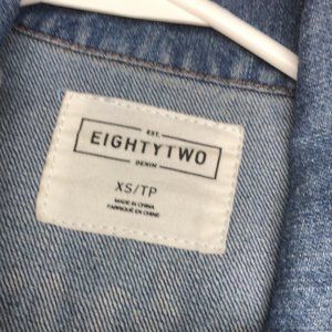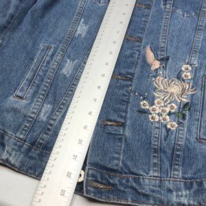 LIKE NEW EIGHTY-TWO DENIM EMBROIDERED JEAN JACKET SZ XS FACTORY DISTRESS…