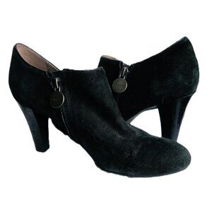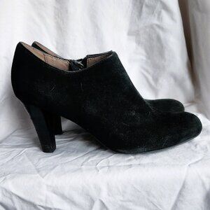 LIKE NEW! Step out in style with these gorgeous Geox black suede heeled ankle boots, size 39 / US 8. D34T60. Just in time for spring!