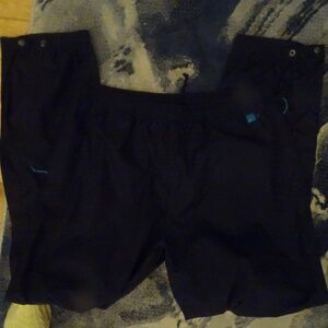 LIKE NEW PATAGONIA H2NO WIND PANTS SIZE LARGE NAVY/TEAL HAS LARGE ZIPPERS/POCKETS ON SIDES OF LEGS, BUTTON CLOSURES ON BOTTOM OF PANTS