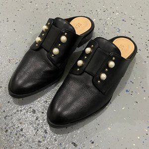 Schutz Jaine Imitation Pearl Embellished Mule In Black Like new condition. Only worn once. No original shoe box. Imitation pearls elevate a sophisticated leather mule designed with oxford-inspired details. - Slip-on - Almond-toe silhouette with open heel. - genuine tanned leather upper - genuine leather lining - genuine leather outsole - Lightly-padded footbed - Made in Brazil - Heel Height: 1 in - Platform Height: 1⁄4 in *First time on Poshmark? Use my invite code CINDYVANCOUVER for 15$ off!