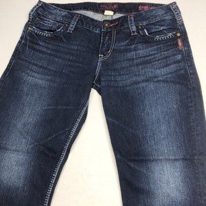 2929 LIKE NEW CONDITION !! PREMIUM DARKWASH DENIM 99% COTTON !! DECORATIVE EMBROIDERY ON BACK POCKETS !! CLASSIC 5-POCKET STYLE !! CONTRASTED DOUBLE STITCHING !! NOT ALTERED !! 8” MIDRISE !! PREMIUM QUALITY DENIM and CLASSIC SILVER fit and style ⭐️