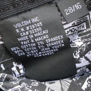3100 LIKE NEW CONDITION !! GENUINE VOLCOM BRAND DENIM 98% COTTON !! EARLY MADE IN MACAU ๐ฒ๐ด EMBROIDERED LOGO !! VOLCOM STITCHED CLOSE lasts forever !! RARE ARTWORK POCKET LINERS !! CLASSIC 5-POCKET STYLE !! TWO COLOR DOUBLE STITCHING !! LIKE NEW CONDITION !!