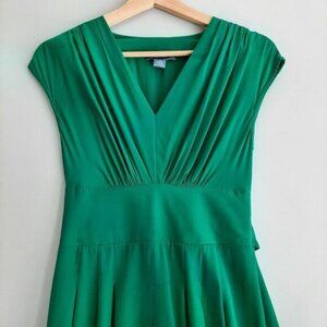 LIL / DIL Anthropologie 100% Silk V-Neck Tie Back Dress Kelly Green Sz XS Flawed