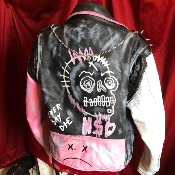 Beautiful hand painted lil peep jacket thick leather ! Women’s xl men’s L