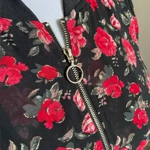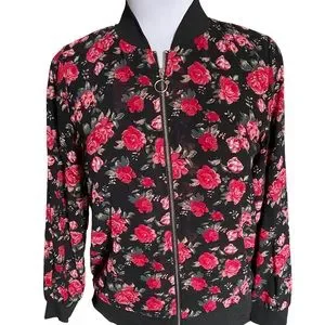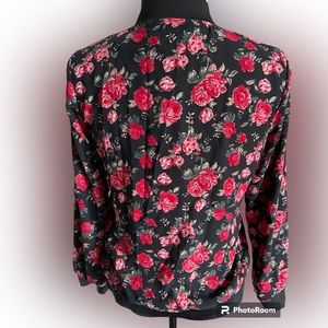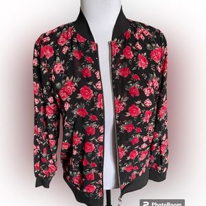 Beautiful LILIE Rose bomber jacket purchased in Paris for 125 euros. Has gold threading which sparkles and is difficult to see in pics☺️two small areas on inside of jacket that have pulled but does not affect the look💕would fit S~M but not L
