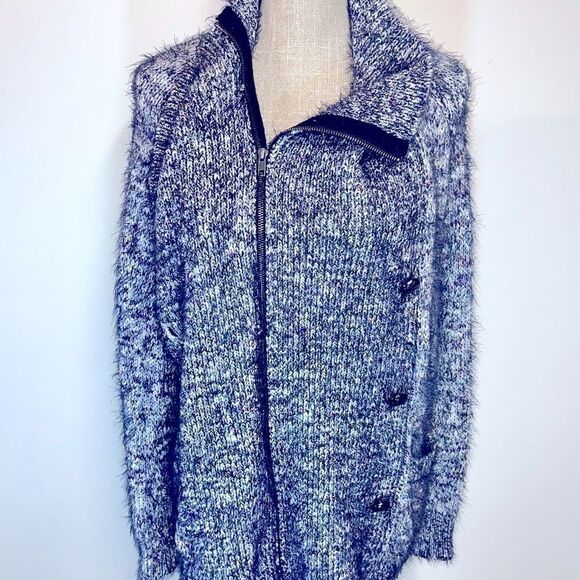 LILLA P Thick Cotton Blend Long Zip and button front Sweater Coat Womens S