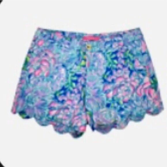 LILLY PULITZER Buttercup Scallop Hem Stretch Knit Shorts Size 4 Full Bloom