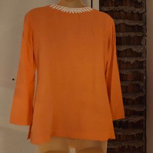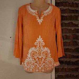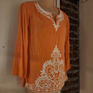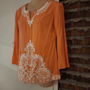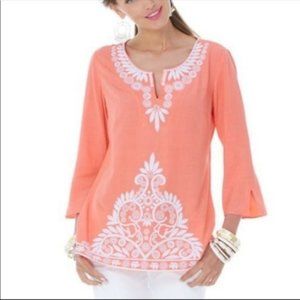 LILLY PULITZER Charlotte Tunic Top Coral Orange Embroidered Elephants Size XS