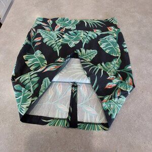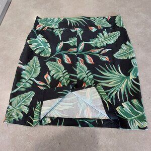 STYLE: Women's Stretch Black Tropical Green Leaves & Floral Print Skirt