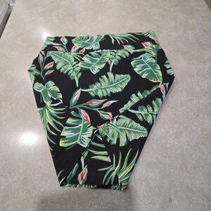 LILY MORGAN Women's Stretch Black Tropical Green Leaves & Floral Print Skirt XL