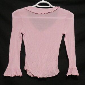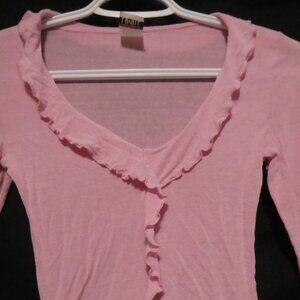 LIMITE | small | Ruffled Pink Long Sleeve V-Neck Blouse