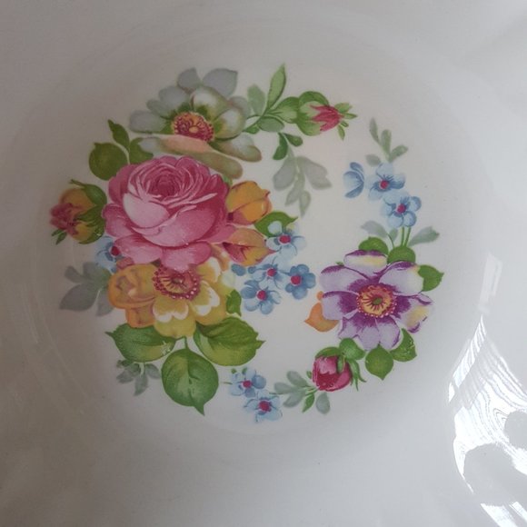 Vintage condition - chips on underside of vegetable bowl rim; no chips on plate. Vintage wear on pattern.