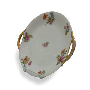 LIMOGES Porcelain Floral Platter With Gold Handles, France Vintage 11"
