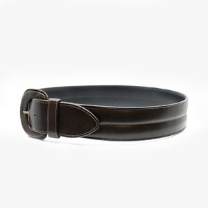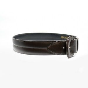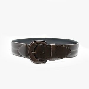 Details: Adjustable to 3 sizes, Leather-covered buckle, Stitching along centre part of belt