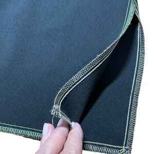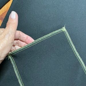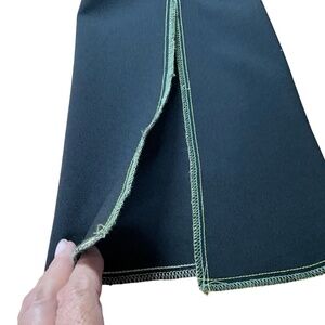 MADE IN CANADA. In very good pre owned condition showing no signs of wear or wash wear. Black with lime green contrast stitching. Split, flared sleeves; split hemline. Front patch pocket. Photos are important so please check all for condition, detail and measurements.