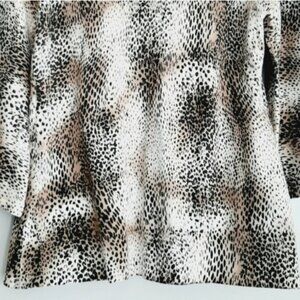 • Long 3/4 sleeve fine knit sweater cardi in abstract cheetah/ leopard print with three button front closure.