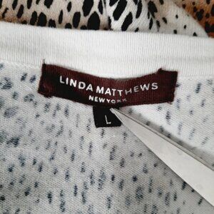 LINDA MATTHEWS Fine Knit Button Front Cardigan Cheetah Animal Print Sz L