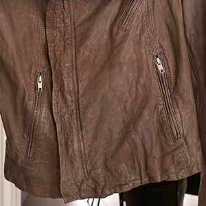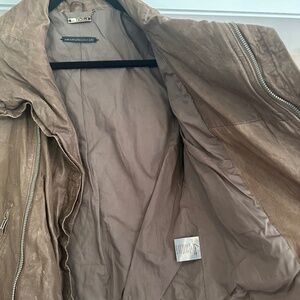 LINE Light Brown Textured Lambskin Motorcycle Jacket - Size L