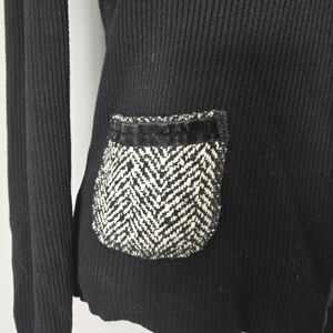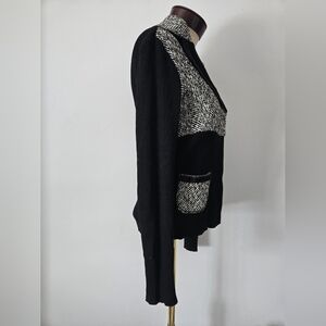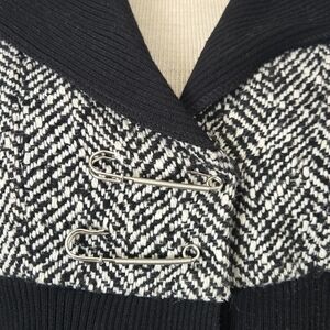 LINEA DOMANI Black and White Mixed Media Knit Cardigan with Safety Pins. Size S