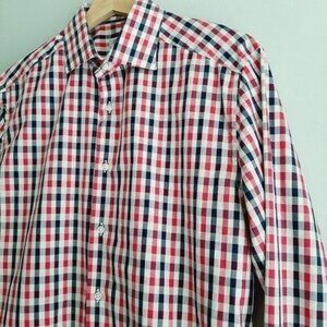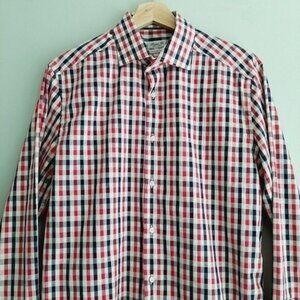 LINEA IN | Italy Button Down Dress Shirt Plaid 2-Ply Mens Sz 36/16