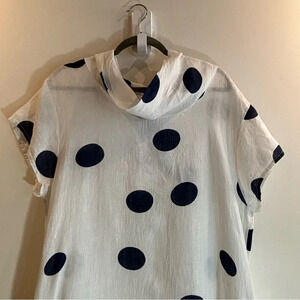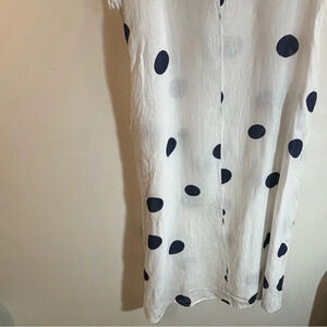 LINEN LUV Sz XL Maxi Dress Cowl Neck A-Line Pockets 100% Linen Unlined. Slightly sheer. Navy polka dot. Perfect for a vacation or cruise. Fresh and breeze. Lagenlook. Art to wear. Made in Italy.