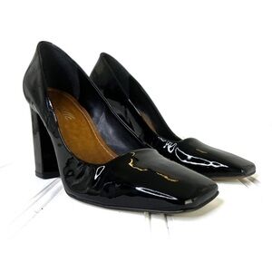 L’INTERVALLE BLACK PUMPS BLACK HEEL SQUARE TOE HEEL PATENT LEATHER BLOCK HEELS 9