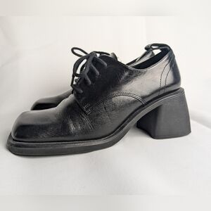 L'INTERVALLE Black Glossy Leather Block Heel Laces Shoes Square Tip Size 37