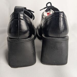 L'INTERVALLE Black Glossy Leather Block Heel Laces Shoes Square Tip Size 37
