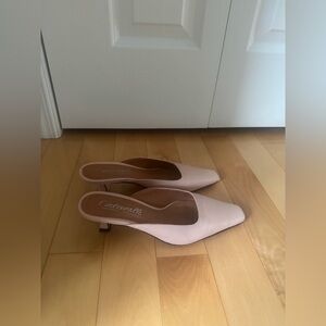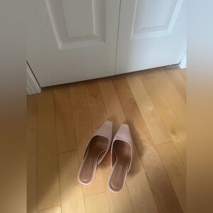 Chic cream mules with a modern silhouette. Perfect for any occasion.