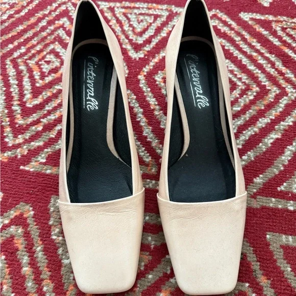 Chic light pink heels with a modern square toe. Perfect for elevating any outfit.
