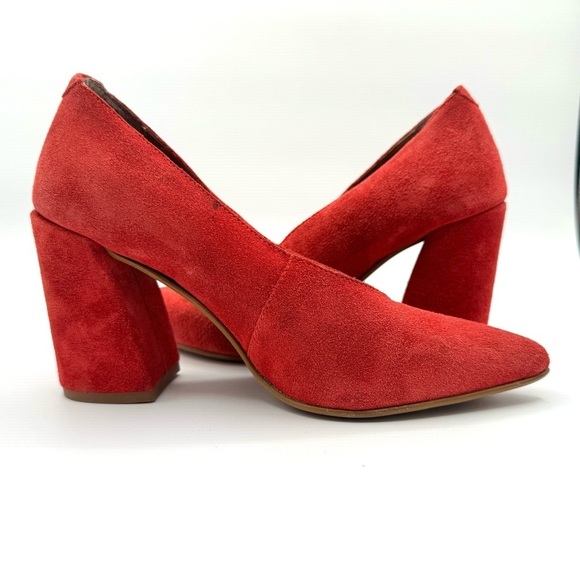 L’INTERVALLE RED LEATHER SHOES BLOCK HEELS POINTED TOE HEEL SIZE 3&
