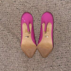 Uppers are a bright pink patent leather with a slightly squared off toe.