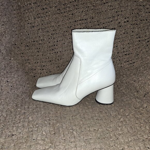 L'INTERVALLE-EATON-White Leather-Square Toe-Cylindrical Heel-SZ 40/9.5-Near Mint