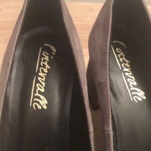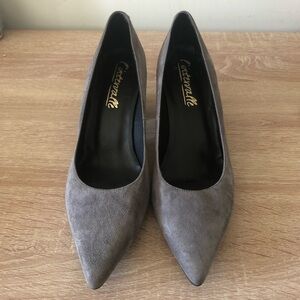 Grey Suede Block Heels