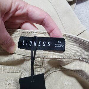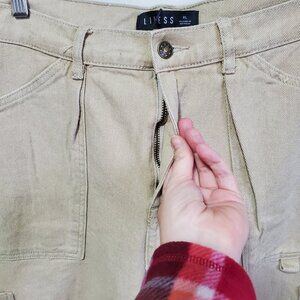 LIONESS NWT Miami Vice Pants Baggy Fit Barrel Leg Utility Beige Women's XL x 33"