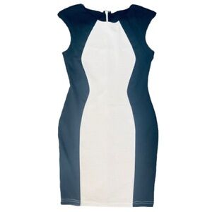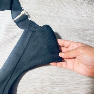 LIPSY Elegant Black and Cream Sleeveless Shoulderpad Ribbed Dress Zip Closure 8