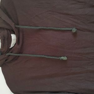 This is a size S shirt hoodie (but it does fit larger than S) by Liquid X. Color is super dark green, almost black. Very cozy with Legging or jeans. Two pockets. Great condition, no rips or stains. I am listing it as a women item, as I wore it myself but it will also fit men (in fact, it actually may be a man item as well)