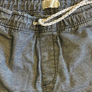 LIRA drawstring pull on shorts in a denim like pinstripe