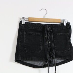 *LIRX Black Lace Up Front Denim Shorts