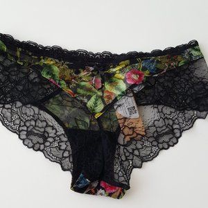 Leavers lace boyshorts scalloped at the thighs embellished with a multicolored floral embroidered pattern on the front.