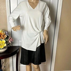 LISETTE Blouse,women M.twist side knot,V-neck,asymmetrical hem,classic,career EC