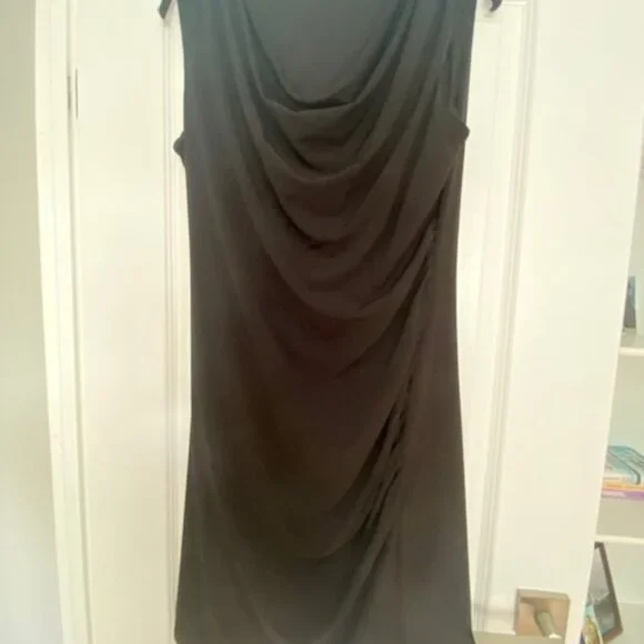 LITTLE BLACK DRESS CALVIN KLEIN FITTED DRES WITH COWL NECKLINE FITS 10-12 (A TRUE LARGE)