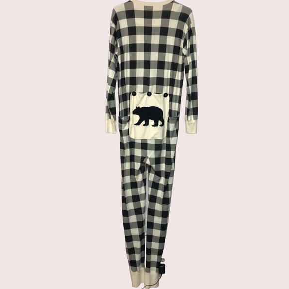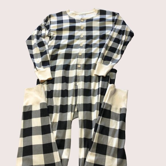 LITTLE Blue House Black & White Checkered Plaid Flap Jack Onsie Pajamas Medium