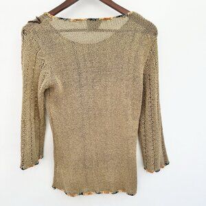 LIV Milano Women’s Boho Beige Sweater With Sequin, Mesh Embellishment Size Large
