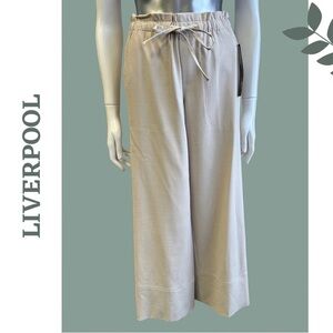 LIVERPOOL PULL ON TIE WAIST WIDE LEG ANKLE Pant Elastoc Waist Tan Size XS