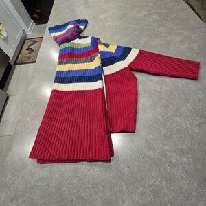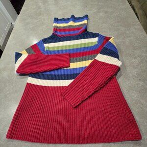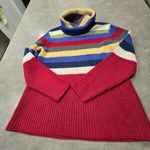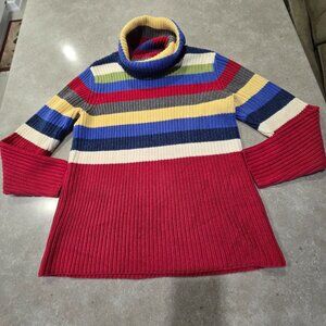 LIZ CLAIBORNE Red w/Multi-Colors Ribbed Striped Turtleneck Sweater - Medium